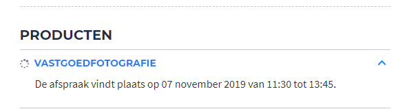 De datum verdwijnt als de afspraak heeft plaatsgevonden. Je ziet hier dan de status van het product staan.