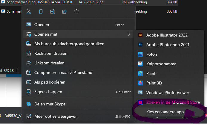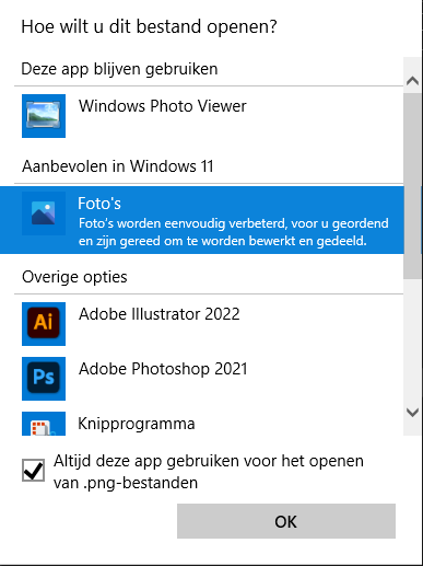 Rechtermuisknop -> openen met -> kies andere app -> Foto's aanklikken (als de app niet aanwezig is, eerst downloaden in app store) -> Altijd deze app gebruiken om te openen. (zie hieronder).