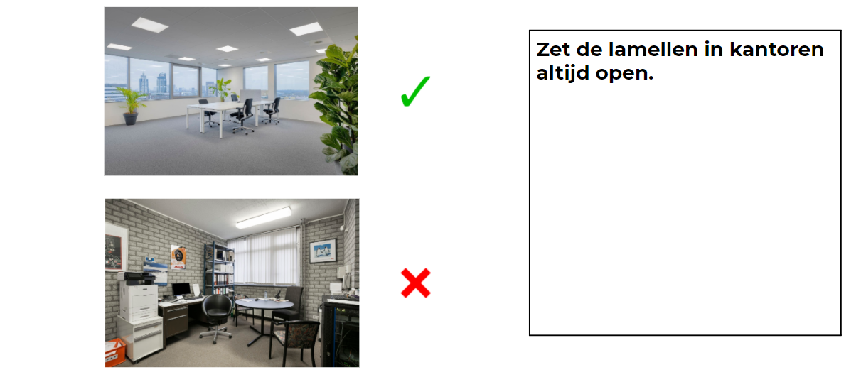 - Zet de lamellen en gordijnen altijd open.