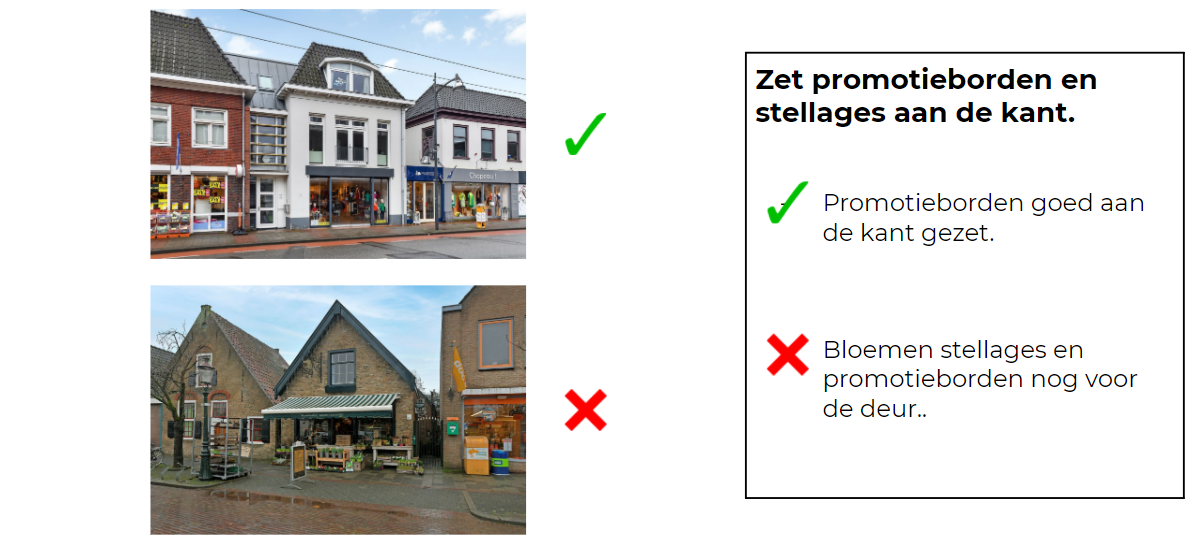 - Promotietafels in winkels: haal weg als het te hoog is en het zicht belemmerd.