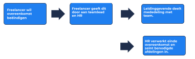 Wanneer een freelancer uit dienst gaat ziet het proces er iets anders uit. Hieronder een overzicht van het proces en wat te doen