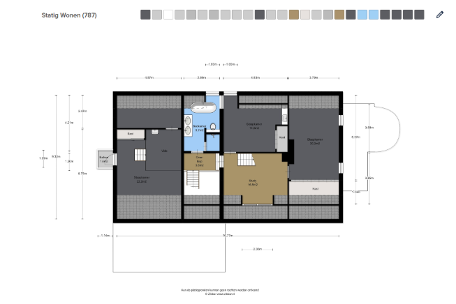 Dit kan niet naar waarheidsgetrouw uitgewerkt worden en is enkel ter indicatie. Hierin voeren we dan ook geen grote wijzigingen in door. Floorplanner is hiervoor ook niet geschikt.