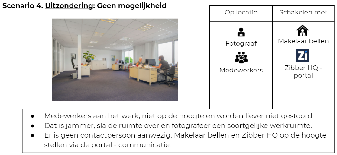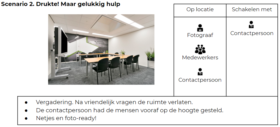 - De werknemers moeten op de hoogte worden gesteld door de klant of de makelaar. Er wordt verwacht van de contactpersoon dat diegene de regie neemt tijdens de opname. Dus de contactpersoon regelt dat de mensen uit de ruimtes zijn en dat het netjes is.