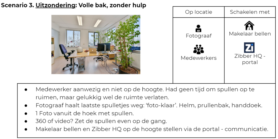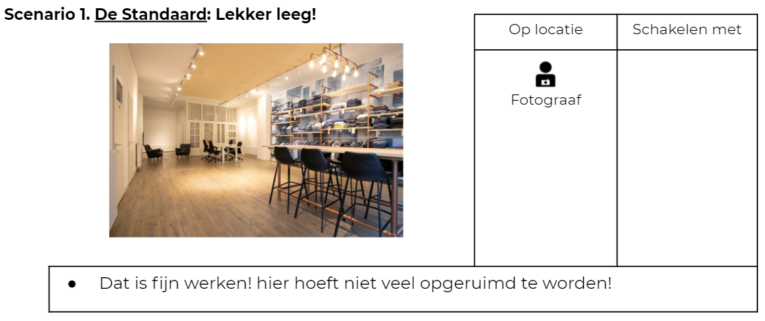 - Opgeruimde ruimtes. De verantwoordelijkheid ligt in eerste instantie bij de klant. Bij uitzonderingen zal dit niet het geval zijn. (wordt toegelicht bij de scenario’s hieronder)